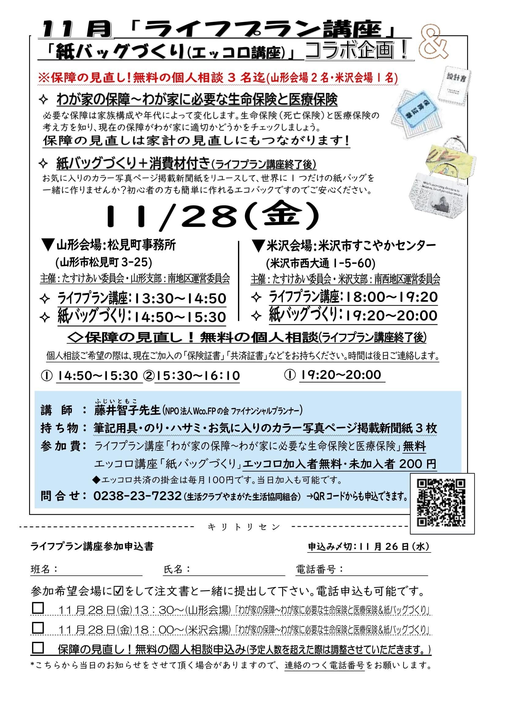 ライフプラン講座 わが家の保障~わが家に必要な生命保障と医療保障&紙バッグづくり