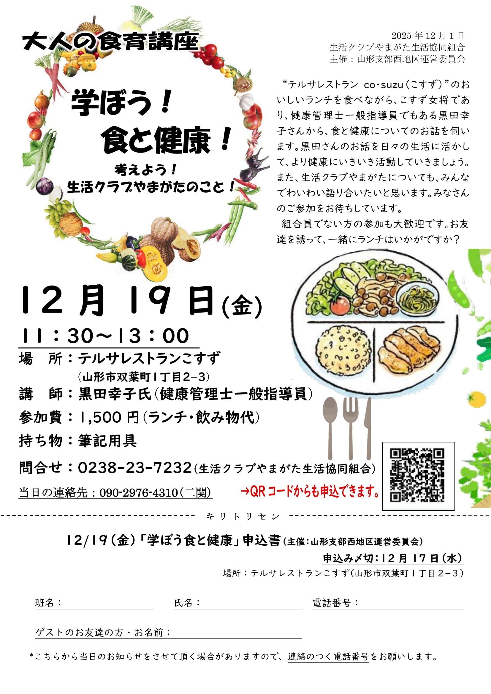学習会 大人の食育講座 学ぼう!食と健康!