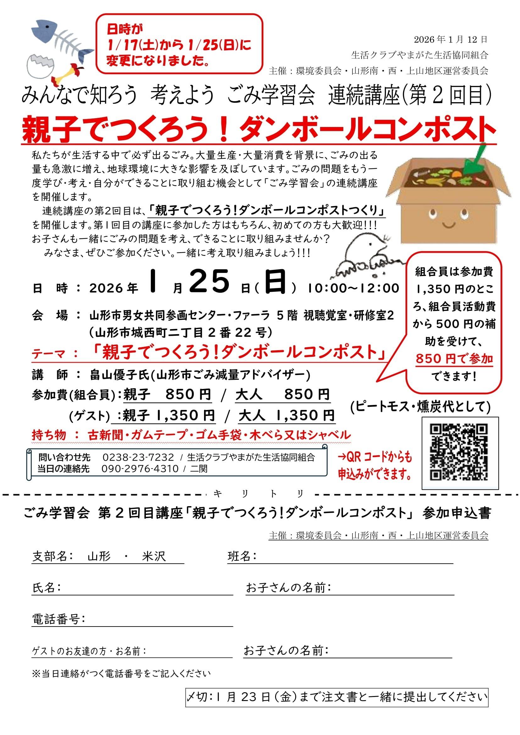 【開催日変更】親子でつくろう! ダンボールコンポスト ごみ学習会(第2回目)