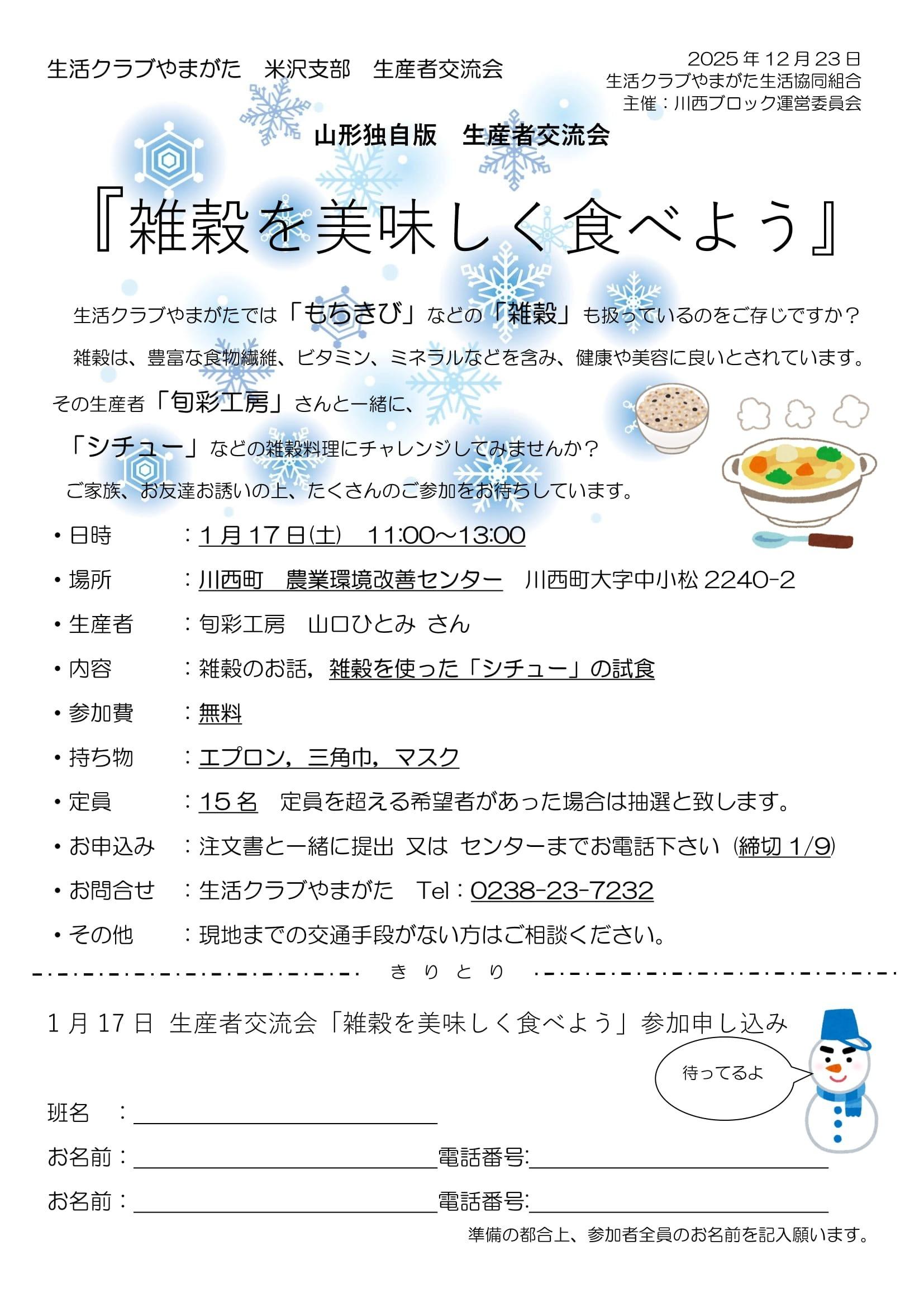 生産者交流会 旬彩工房 雑穀を美味しく食べよう