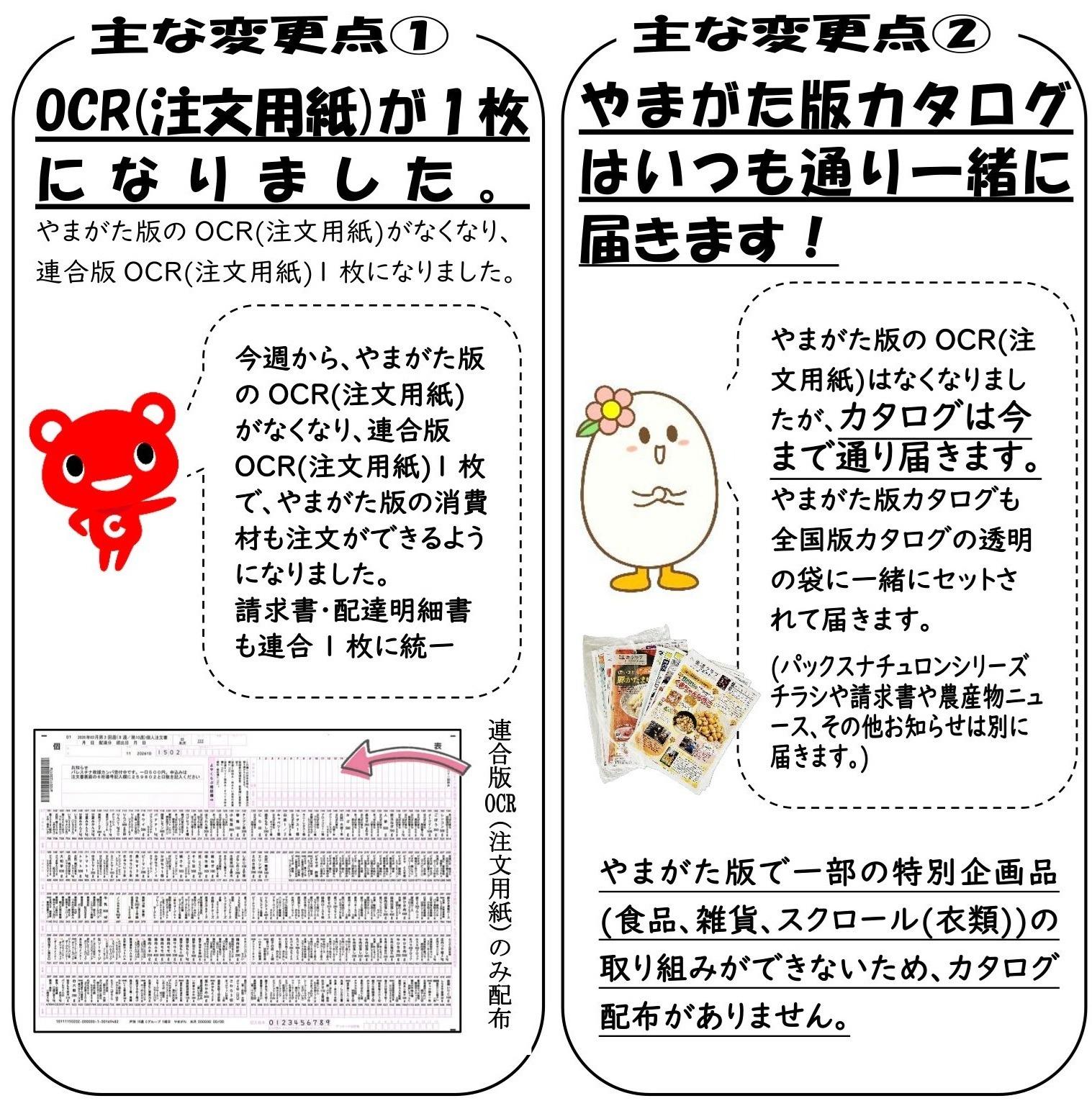 いよいよ、3/16(月)から配布のカタログ(4月1回配達分)より、OCR(注文用紙)が1枚になります。